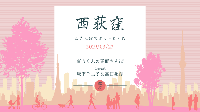 おさんぽ番組【西荻窪】お散歩スポット7選|19.3.23.有吉くんの正直さんぽまとめ!2019年3月23日 サマー OSANPO.com お散歩エリア『西荻窪』駅周辺『産前ラストさんぽも“生野らしさ”全開!』2019年3月23日(土)放送分今回のゲス …