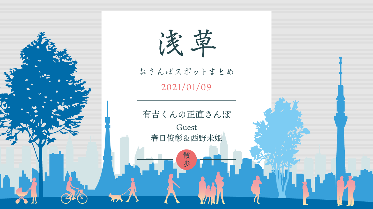 実に3年ぶりの浅草さんぽ。「寒いですね~」と歩いていくと、言ってる傍から半袖で目も当てられないほど寒そうなオードリー春日さんが登場。